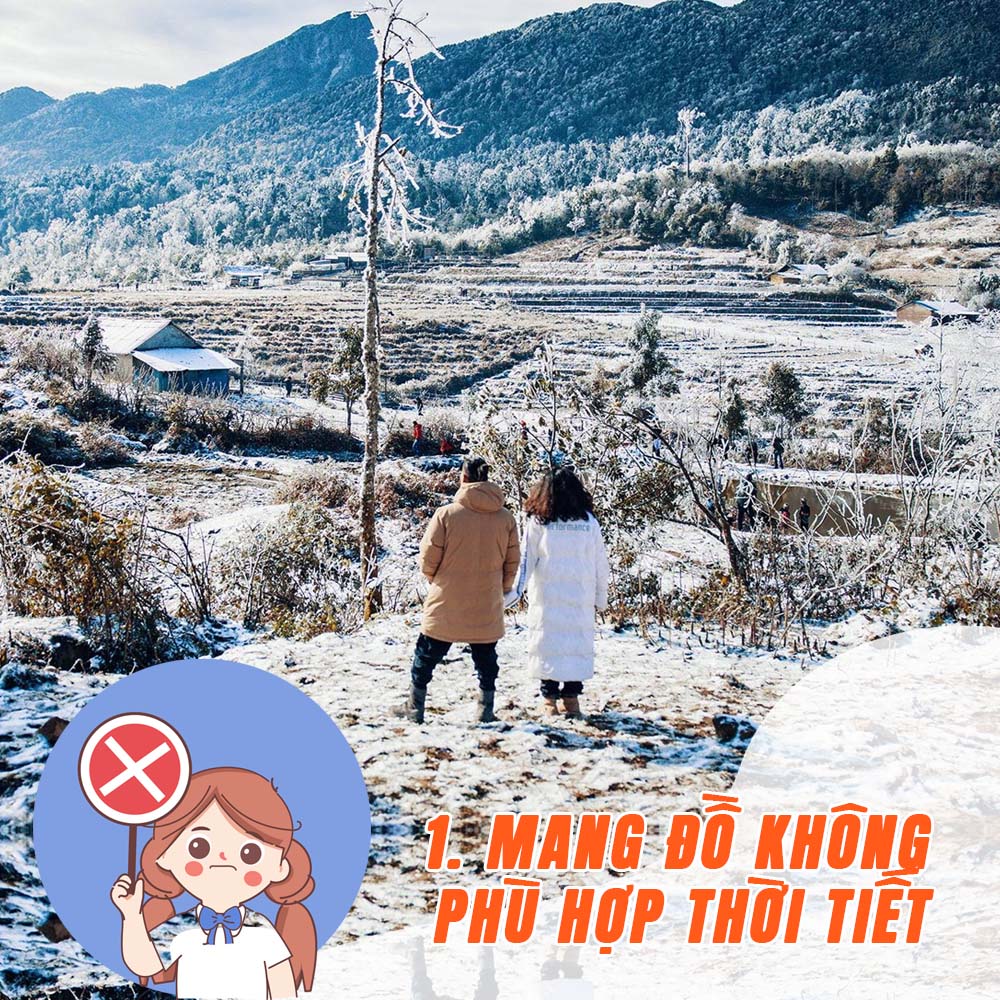 Thời tiết Sapa thay đổi nhanh và thường lạnh hơn nhiều so với Hà Nội. Du khách lần đầu thường mang đồ quá mỏng hoặc giày không phù hợp để di chuyển nhiều.