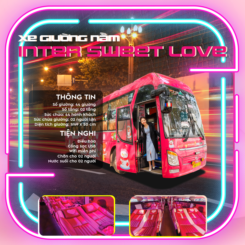 • Xe Giường Nằm Sweet Love: Giường da cao cấp, gối mềm, hệ thống massage nhẹ, kết nối Wi-Fi & sạc USB.